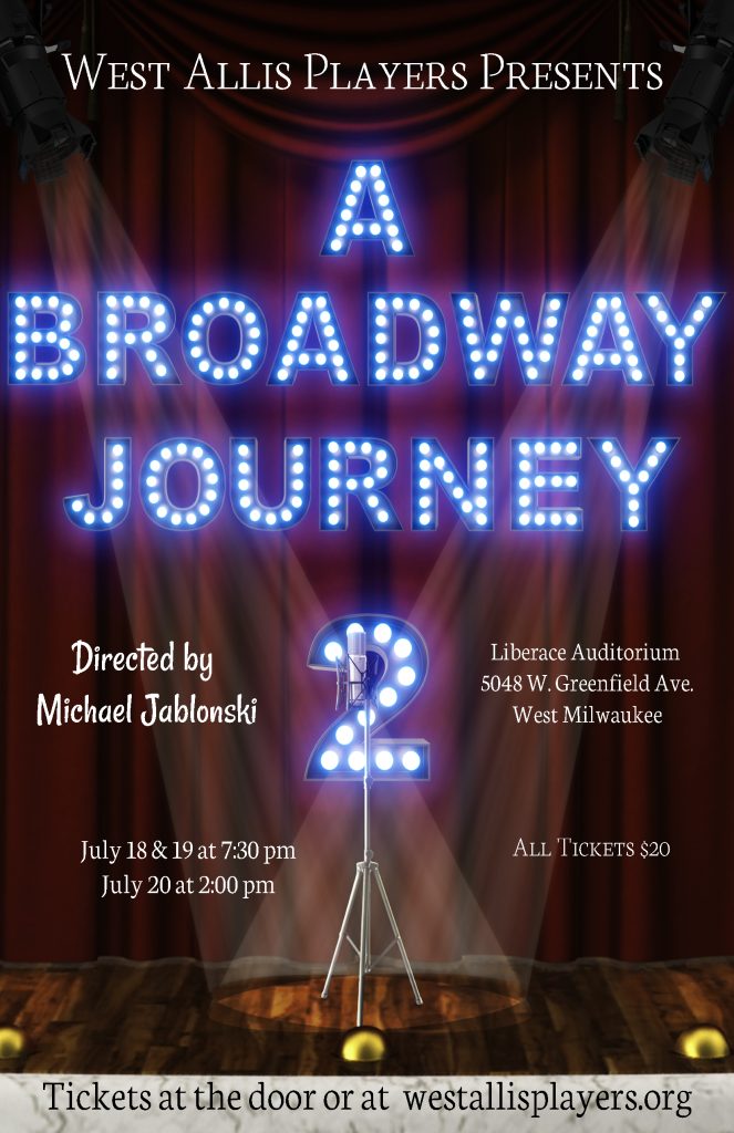 for West Allis Players’ production of: A Broadway Journey 2 by Michael Jablonski Directed by: Michael Jablonski